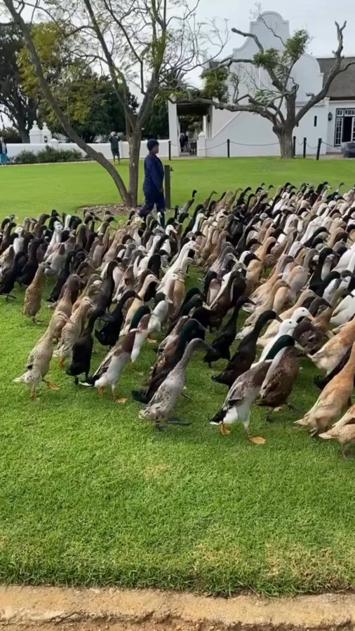 Indian runner ducks going in the field to clean the crops by eating pests like slugs, snails, and beetles, and by providing natural fertilizer through their droppings.